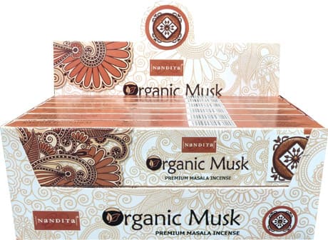 Encens nandita organic musk Boite de 12 paquets de 15g Masala roulé main