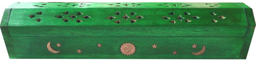 Caseta porta incienso en madera verde claro luna y sol 30cm
