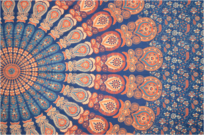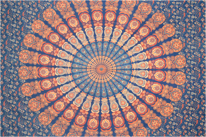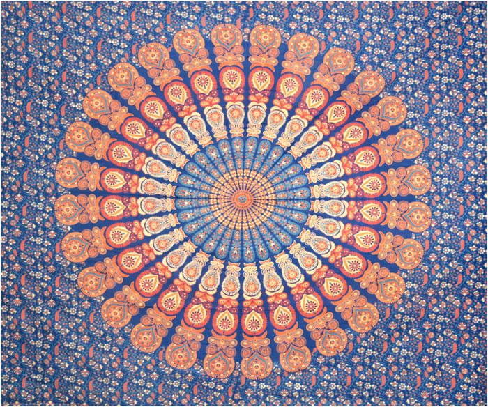 Colgante de pared mandala azul oscuro azul claro naranja y rojo