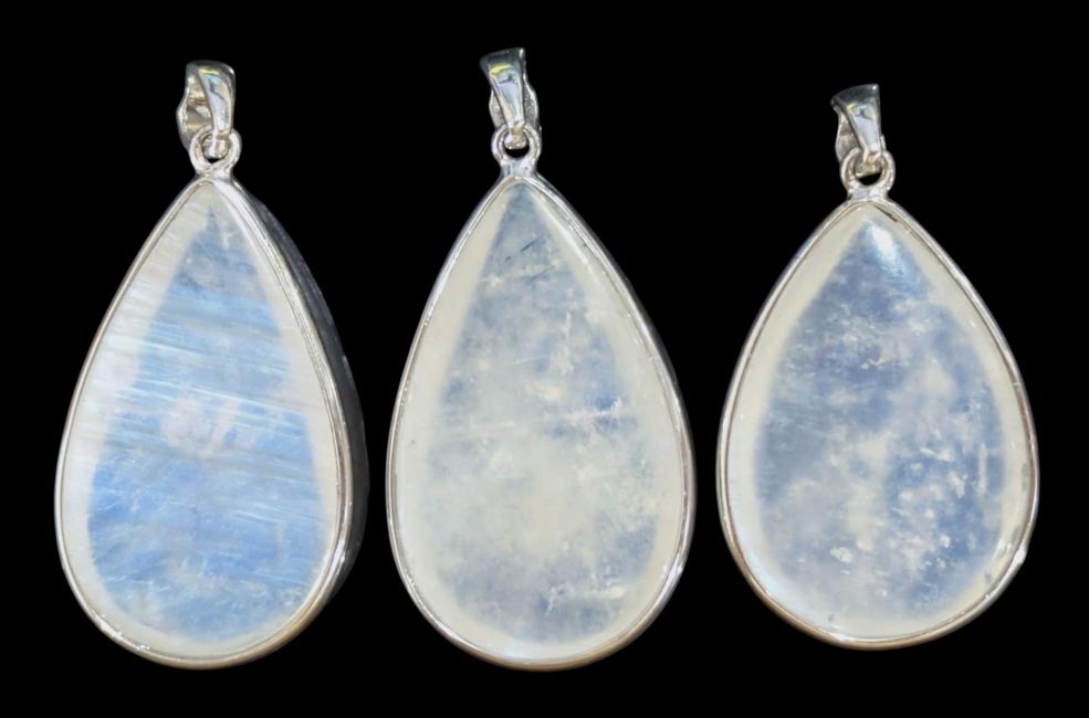 Colgante de plata de ley 925 con piedra lunar blanca AAA, 3 piezas, 10,82 g