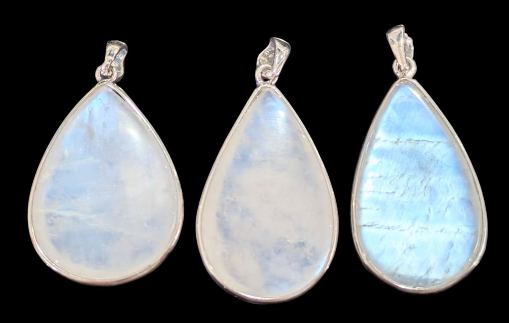 Colgante de plata de ley 925 con piedra lunar blanca AAA, 3 piezas, 10,87 g