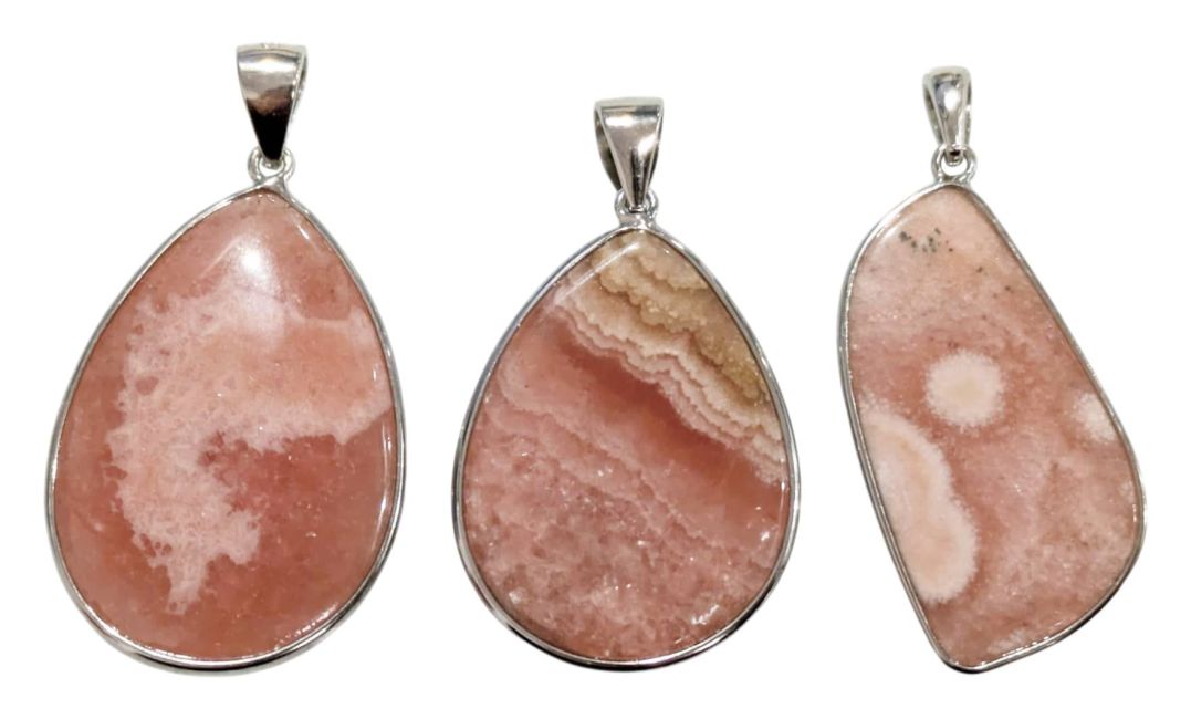 Colgante de Rodocrosita en Plata de Ley 925, Argentina AA+, 3 piezas, 13,49 g