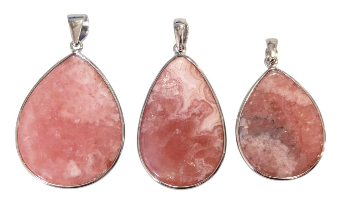 Colgante de rodocrosita en plata de ley 925, talla argentina AA+, 3 piezas, 12,92 g