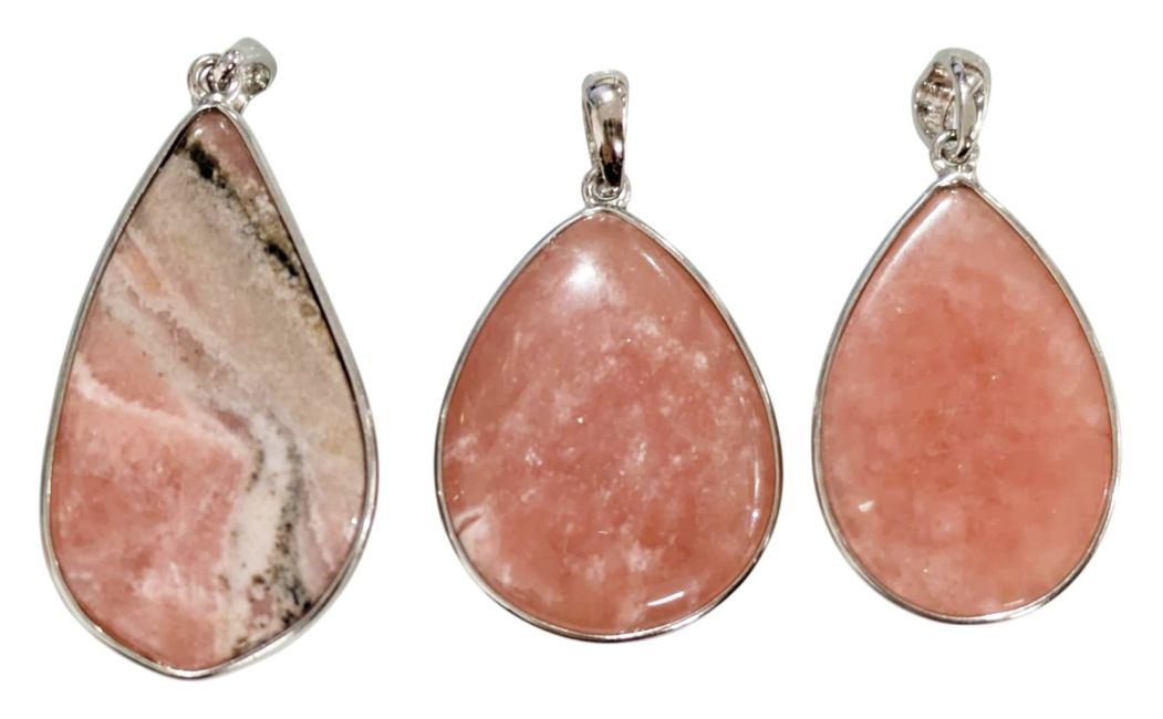 Colgante de rodocrosita en plata de ley 925, talla argentina AA+, 3 piezas, 12,92 g