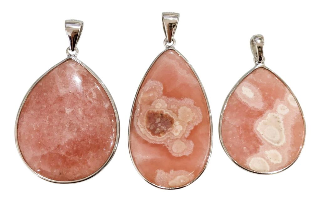 Colgante de rodocrosita en plata de ley 925, talla argentina AA+, 3 piezas, 14,8 g