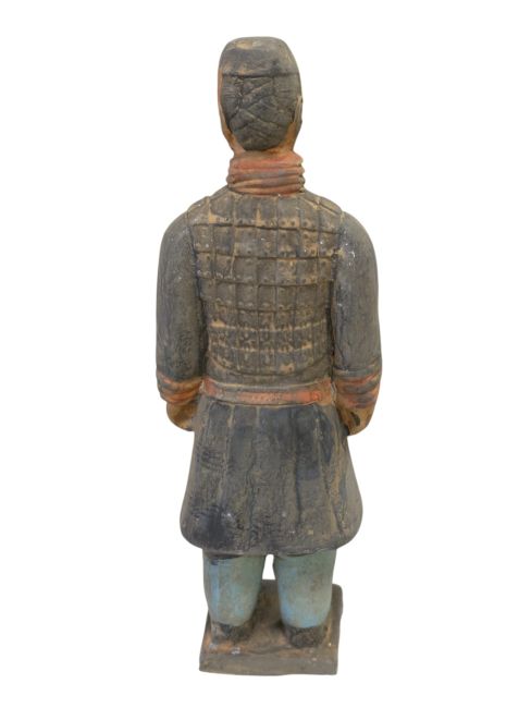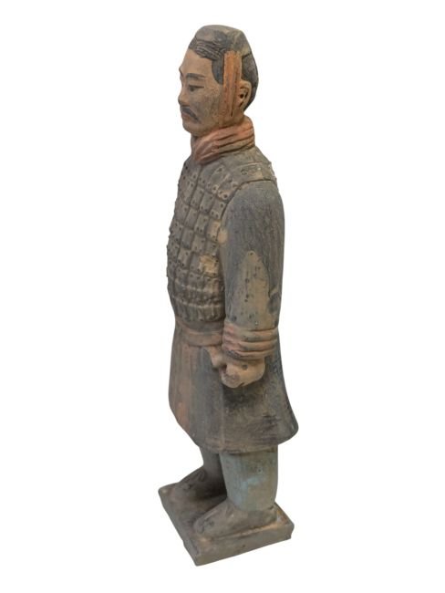 Las estatuas de terracota de guerreros y caballos, de gran realismo, representan fielmente su apariencia en el momento de su descubrimiento. El proceso de envejecimiento es mucho más complejo que el de las estatuas comunes, requiriendo un trabajo meticuloso y una cantidad considerable de tiempo. Para lograr una apariencia auténtica, deben enterrarse durante un tiempo, luego desenterrarse, exponerse a la intemperie y restaurarse. Solo después de este proceso de erosión natural se puede lograr un efecto realista. Por lo tanto, su valor es considerablemente alto debido a la complejidad y autenticidad del proceso de fabricación.