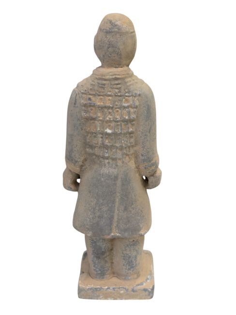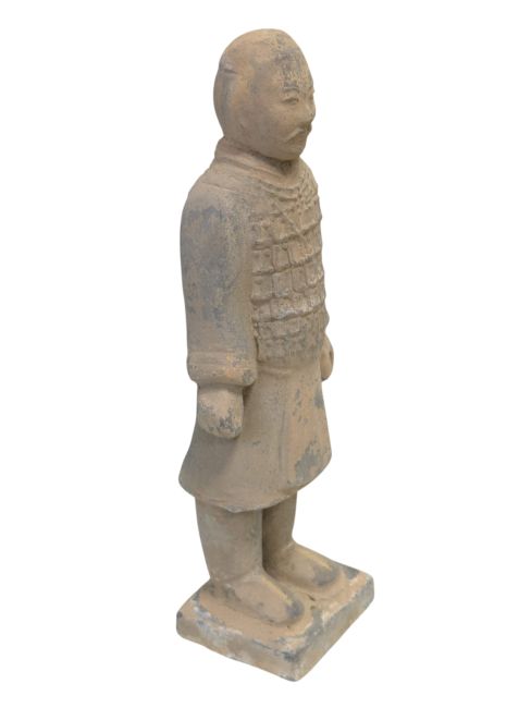 Las estatuas de terracota de guerreros y caballos, de gran realismo, representan fielmente su apariencia en el momento de su descubrimiento. El proceso de envejecimiento es mucho más complejo que el de las estatuas comunes, requiriendo un trabajo meticuloso y una cantidad considerable de tiempo. Para lograr una apariencia auténtica, deben enterrarse durante un tiempo, luego desenterrarse, exponerse a la intemperie y restaurarse. Solo después de este proceso de erosión natural se puede lograr un efecto realista. Por lo tanto, su valor es considerablemente alto debido a la complejidad y autenticidad del proceso de fabricación.