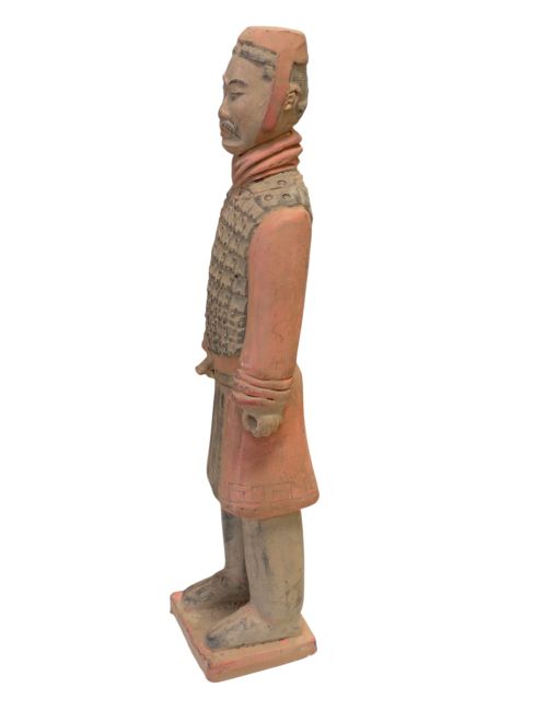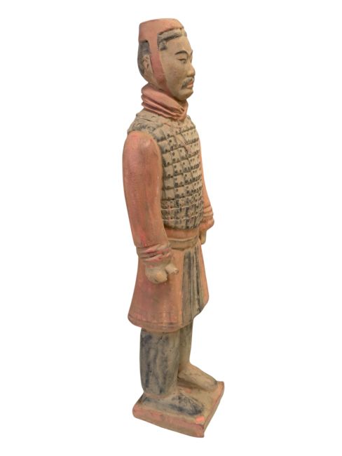 Las estatuas de terracota de guerreros y caballos, de gran realismo, representan fielmente su apariencia en el momento de su descubrimiento. El proceso de envejecimiento es mucho más complejo que el de las estatuas comunes, requiriendo un trabajo meticuloso y una cantidad considerable de tiempo. Para lograr una apariencia auténtica, deben enterrarse durante un tiempo, luego desenterrarse, exponerse a la intemperie y restaurarse. Solo después de este proceso de erosión natural se puede lograr un efecto realista. Por lo tanto, su valor es considerablemente alto debido a la complejidad y autenticidad del proceso de fabricación.