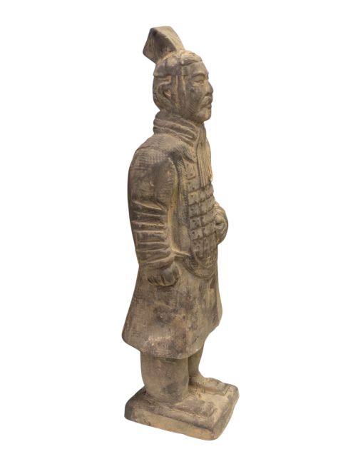 Guerreros con armadura: Estas estatuas representan soldados con armadura protectora, lo que refleja su estatus de élite en el ejército de Qin Shi Huangdi. A menudo están equipados con armas sofisticadas y protegidos por una robusta armadura, lo que simboliza su papel crucial en la defensa del imperio.