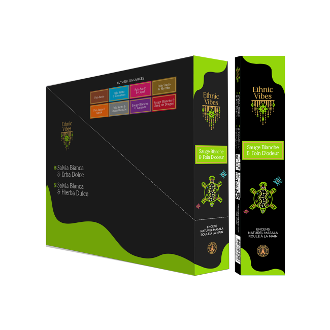 Incienso Ethnic Vibes, fragancias y aromas, salvia blanca, hierba dulce, 15 g