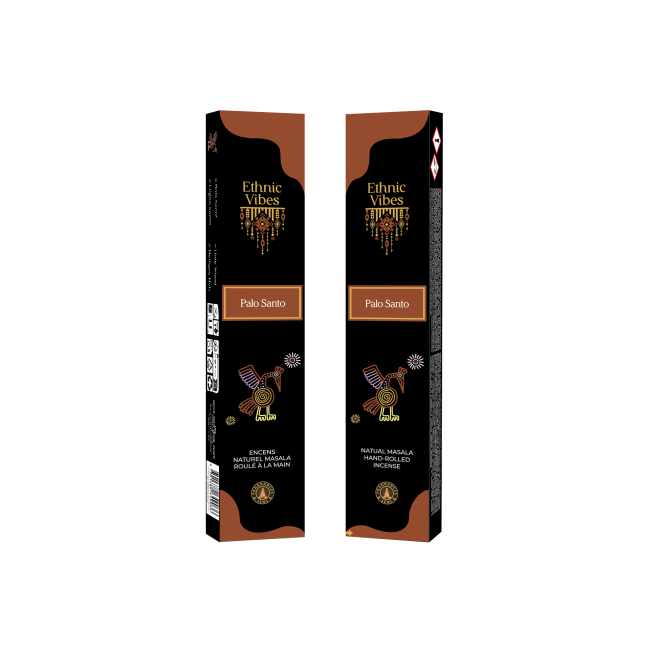 Descubre Fragrances & Sens Ethnic Vibes: Incienso Palo Santo Masala, una fragancia amaderada y envolvente inspirada en maderas sagradas. Su aroma cálido, dulce y reconfortante crea una atmósfera relajante, ideal para la meditación y el bienestar diario.