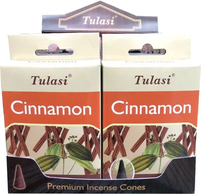 Caja de 12 paquetes de 15 conos.canela Promueve el buen humor y la prosperidad en el hogar, desarrolla la creatividad, la espiritualidad, la felicidad, el éxito, la curación, la fuerza, los poderes psíquicos, el amor, la protección, estimula el apetito.