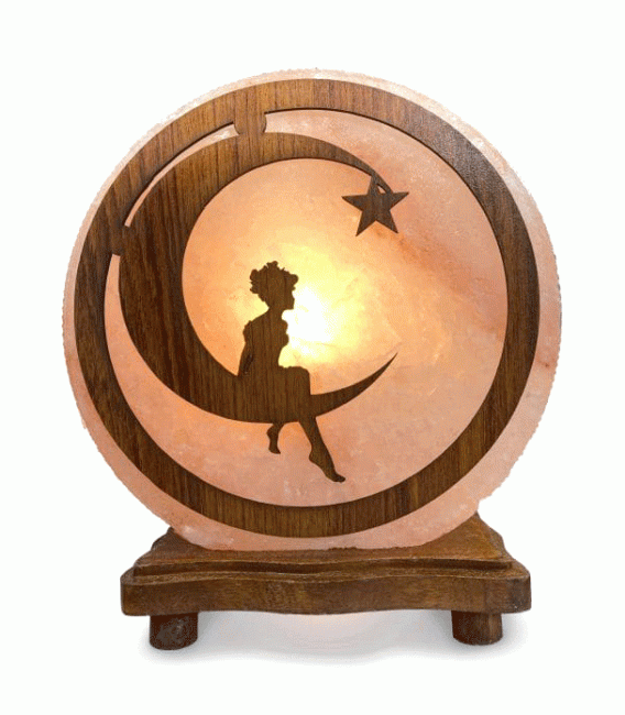 Lámpara de sal natural con base de madera y sin panel. El panel de madera se vende por separado. El panel magnético se fija mediante cuatro tornillos de acero inoxidable. El círculo mide 20 cm de diámetro y 7 cm de grosor.
