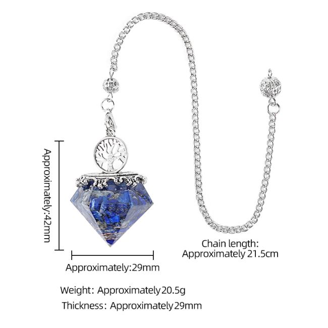 Péndulo adivinatorio de orgonita para radiestesia con cristales de piedra natural.