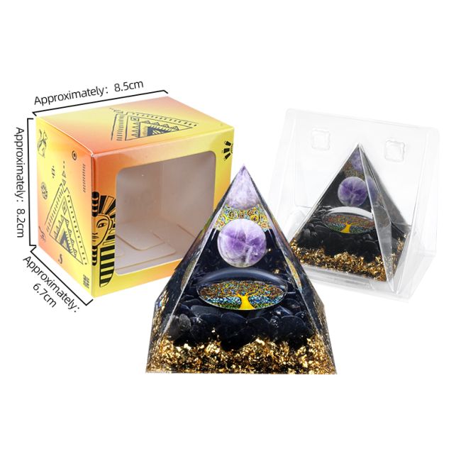Pirámide de Orgonita Amatista & Obsidiana Negra Árbol de la Vida