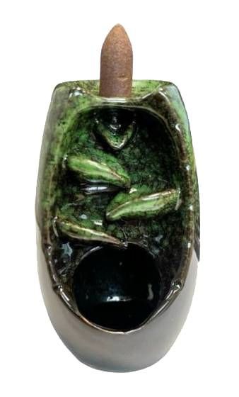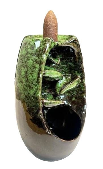 Porta Incienso de Reflujo de Cerámica Verde Cascada de Hojas 13cm