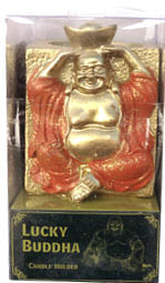 Portavelas buda de la suerte de resina naranja 7cm