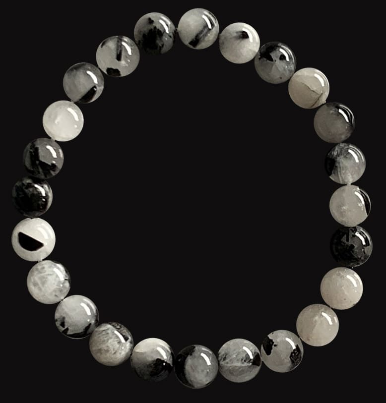Pulsera Cristal de Roca Turmalina A perles 8mm.