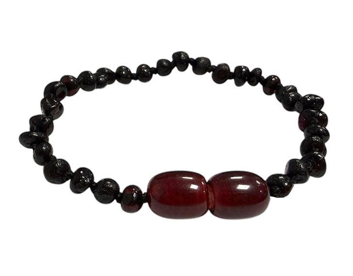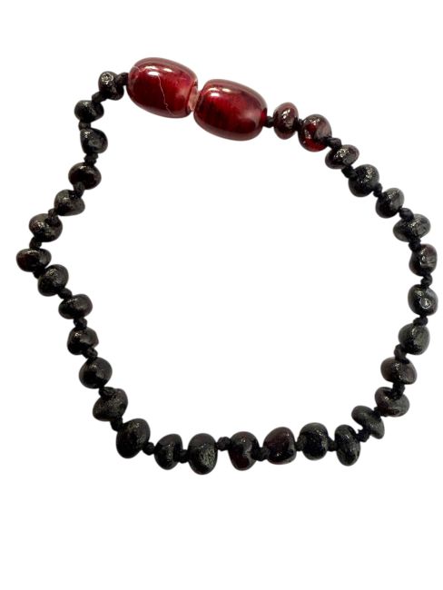 Pulsera de bebé con ámbar báltico y cereza atornillada