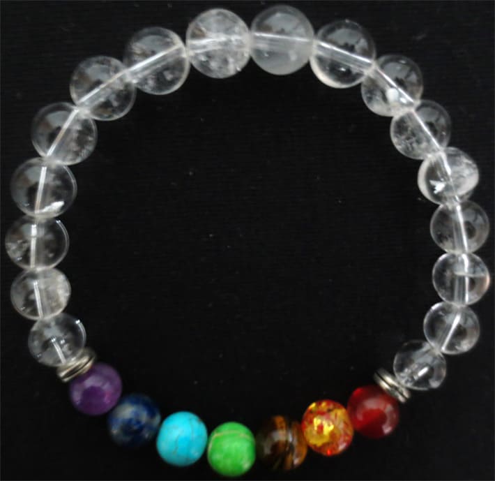 Pulsera de cristal de roca y 7 chakras cuentas 8mm
