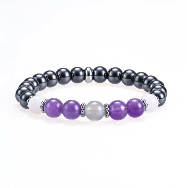 Pulsera de hematita, amatista, cuarzo rosa y labradorita con cuentas de 8 mm