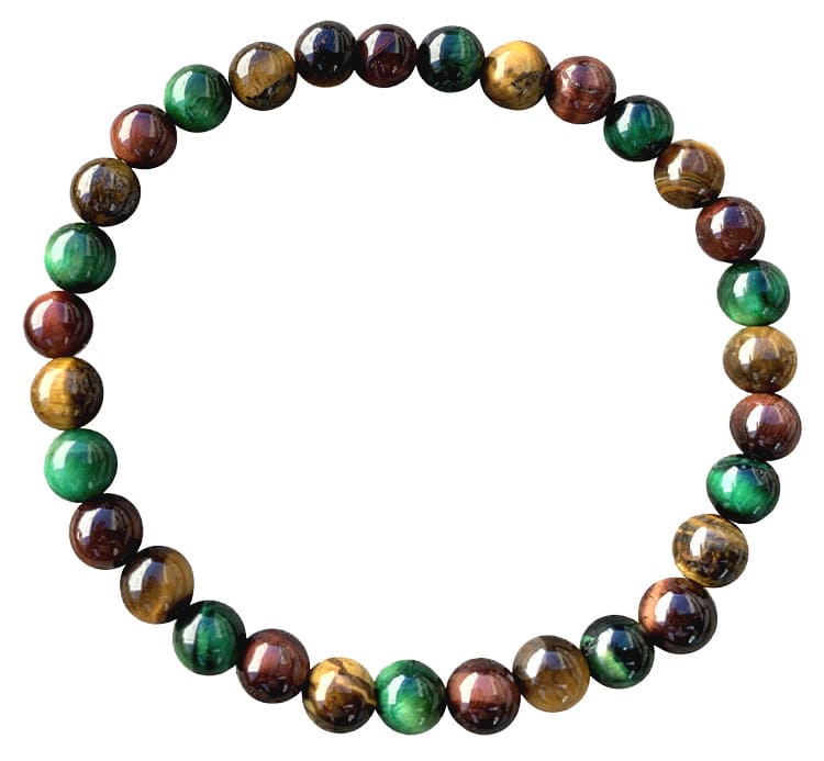 16 - 18 cmOjo de tigreOjo de tigre verde teñidoOjo de bueyLa piedra de ojo de tigre adquiere diferentes colores. Cuando es rojo, se llama ojo de buey o toro. Cuando es azul, se llama ojo de halcón o águila. Esta última versión puede teñirse de verde, resultado de la mezcla y la proximidad visual de las rayas amarillas, doradas, grises y azules.